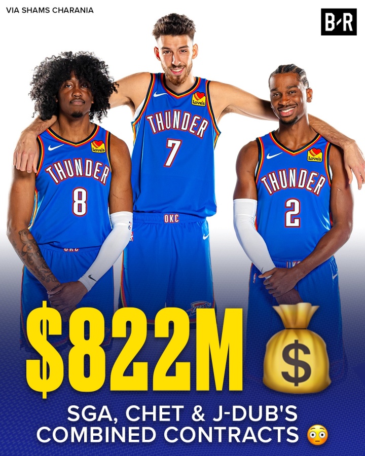 07月11日讯 今夏,雷霆先后提前续约了SGA、切特、杰伦威,用8.22亿美元的预定薪水锁定了新三少!
